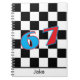 Este design de caderno 67 personalizado e tendência em xadrez preto apresenta dígitos rosa e azul em negrito em um fundo xadrez divertido. Perfeito para crianças, estudantes e adolescentes que amam estilos personalizados e divertidos. Um design de número 67 brilhante adiciona estilo e diversão. Personalize com qualquer nome.