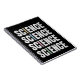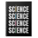 Ilustração colorida com o design de texto "Science, Science, Science, Science" e decoração de tubos de ensaio coloridos