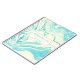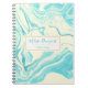 Um notebook personalizado na moda e sofisticado com um padrão elegante de mármore faux com cores giratórias em azul turquesa e cores creme. Um quadro colorido creme com borda dourada colocada sobre cima com seu nome e título/assunto.