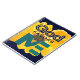 Belo design gráfico, cor d'água, pano de fundo amarelo com as palavras "DEUS FAVORS ME" - tudo num fundo azul marinho escuro.