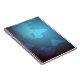 This modern world map design is formed from a grid of tiny square dots, creating a clean digital and pixel-inspired look. Blue gradient tones define the landmasses, while the glowing background transitions from deep warm hues to bright blue, adding depth and contrast. The centered composition and abstract style offer a contemporary interpretation of the global map, ideal for modern interiors, tech-inspired spaces, and fans of digital art aesthetics.