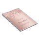Um caderno para um aniversário brilhante e glamouroso de 16 anos. Um fundo rosa de ouro falso com um brilho elegante rosa de ouro brilhante, pintura pingada. O texto: O nome é escrito em ouro rosa escuro com um grande estilo escrito à mão moderno. Tempate para uma data e 16 anos. Perfeito como um guia de festa de aniversário ou para planejamento e organização de partidos.