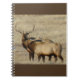 Bloco de Anotações Bull Elk. Durante a estação de ruto do outono, esses touros bateriam uns contra os outros por meio de ritos reprodutivos com as vacas, durante o resto do ano os touros se unem e são amigáveis, até protetores uns dos outros.