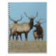 Notebook Bull Elk Skyline. O céu limpo é um excelente pano de fundo para esta fotografia de três grandes alces. Quando não alimentam alces nas pradarias, gostam de andar por cima das colinas, onde podem ver as ameaças que se aproximam.