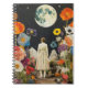 Entra num mundo de charme vintage com este caderno espiral sereno com a vista de trás de uma mulher contra o brilho luminoso de uma lua de crescente ou de cheio. Os tons suaves e nostálgicos parecem evocar a beleza do eterno e a introspecção silenciosa, fazer-a uma peça perfeita para amantes da arte clássica e designs inspirados no celeste.