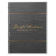 Caderno Espiral Elegant Black Linen Fabric Gold Frame Professional