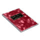 Um elegante caderno de cosmetologia com um glamouroso fundo vermelho-vivo. Personalize adicionando o nome do maquiador profissional ou cosmetólogo à área de texto enquadrada de luxo preto e ouro. Todo o texto neste modelo de design de na moda pode ser personalizado com a sua profissão ou negócio preferido. Imagem plana, NÃO metálica.