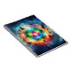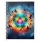 Um trabalho de arte vibrante e psicodélico com um triângulo colorido cercado por um fundo cósmico girante e um bando de corvos. A imagem evoca um sentido de mistério, espiritualidade e energia cósmica.