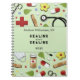 Notebook creativo para enfermeiras com linha de apreciação de enfermeiros, suprimentos médicos e flores. Para personalizar editar texto para adicionar nome e ano.