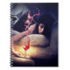 Este caderno tem um desenho de uma mulher derramando seu vinho nele.