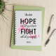 Outubro é Mês de consciência do câncer de mama, mas este notebook inspirador é perfeito para ser usado o ano inteiro. Ele apresenta uma fita rosa junto com a frase sentida, "Esperança com todo o seu coração, luta com todo o seu poder." É um lugar excelente para anotar seus pensamentos, preocupações e perguntas.
