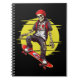 Um design surpreendente com um esqueleto vestido com roupas de rua coloridas e bandana vermelha, andando de skate. Perfeito para skatistas e amantes de skate.