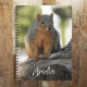 Fotografia natural. Esquilo adorável em um bloco de notas personalizado.