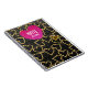 Caderno Espiral estilo falso de couro preto com corações dourados,