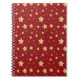 Caderno Espiral Estrelas do ouro em Fundo Vermelho