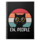 Design com estilo retrógrado engraçado e colorido com gato preto giro e decoração de fundo listrada colorida e design de texto "Ew, Pessoas"