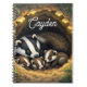 Bloco de notas personalizado bonito com uma ilustração ai de um texugo de mamã e seus bebês todos dormindo em seu túnel subterrâneo chamado sett.