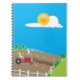 Notebook infantil com uma arte gráfica brilhante e colorida de um agricultor no seu trator que tende à sua fazenda num dia ensolarado. Personalizado com o nome do seu filho no campo recém-arado.