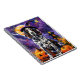 Abraçar o espírito do Dia das Bruxas com esta design encantadora que apresenta um cachorro fofo num chapéu de bruxa rodeado por abóboras entalhadas. Perfeito por adicionar um pouco de charme assustador às suas comemorações festivas.