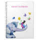 Elefante de desenho animado bonito com pássaro e borboletas. Monograma opcional