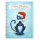 Caderno Espiral Feliz Natal com Gato Negro com Papai noel Hat