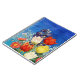 Linda disposição floral de tulipas com beija-flores e borboleta sobre fundo azul variado