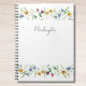 Este notebook floral apresenta flores silvestres e folhagem de cor aquosa delicada, em cores pastel, em conjunto com a tipografia de na moda. Facilmente personalizável. Original Watercolor © Michele Davies.