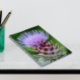 Um notebook com tamanho pessoal, encadernado em espiral, que apresenta a foto do cobrir de uma cabeça de um globo roxo e florescente de artichoque. Um design floral adorável! Use como diário ou para fazer anotações.