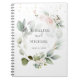 Notebook Elegante Floral Greenery Wreath. Este design apresenta uma ilustração de rosas rosa pálidas e folhagem verde em estilo aquarela.