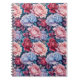 Este caderno espiral apresenta rosas e peônias em azul-céu suave, cor-de-rosa-casca delicada e vinho tinto-escuro, com folhagem lacrimejante e roxa no fundo. Bonita e luxuosa com um olhar antigo de país que ainda é muito moderno.