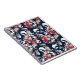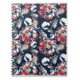 Caderno Espiral Flores brancas e vermelhas em azul.