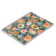Cor d'água colorida e anêmonas cor de laranja pastel, brancas e cor-de-rosa, papoilas, rosas e outras flores da primavera com folhas verdes claras sobre fundo azul escuro picturesco.