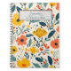 Um vibrante notebook floral pintado à mão. Um belo design de flores amarelas e cor-de-rosa com folhagem verde azul e bagas vermelhas. Caixa de texto com borda azul e laranja escura pode ser personalizada conforme necessário. Um lindo caderno de verão para ideias, notas e projetos.