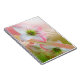 O design delicado da flor (impressão da foto) na luz - cor-de-rosa e nos tons verdes decorados por uma fita com um ornamento e as pérolas do ouro.