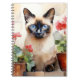 Caderno Espiral Flores Vermelhas, Gatos, Siameses