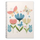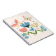 Design original de flores e borboletas brancas em cores azul, laranja e pêssego