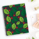 Caderno Espiral Folhas Verdes, Berries Vermelhos, Padrão De Folhas