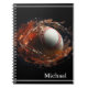 Este caderno espiral de fotos é mostrado a preto com um impressão de baseball. Personalize este item e altere o nome do exemplo para o seu.