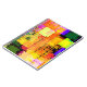 Design geométrica moderna e ranhosa, utilizando quadrados e círculos abstratos coloridos. Um caleidoscópio de cores constitui este design contemporâneo.