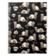 Furões feitos à mão, xoxo e cadernos de padrões de corações, fundo preto.