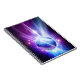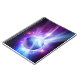 Uma bola de futebol prateada brilha como o herói num fundo azul e roxo de raios brilhantes.