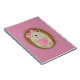 Um belo ouriço-de-desenho animado vestindo um arco e abraçando um notebook cardíaco.