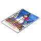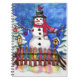 Pintura de aquarela original de Sandra Gale, de um tradicional homem de neve parado em frente a uma cerca de piquete com luzes de Natal brilhantes refletindo sobre a neve do inverno. Pássaros, casas de pássaros, e Enfeites de natal fazem disso uma cena clássica de Natal que parece excelente em papel de embrulho, cartões de natal e muito mais!