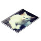 Este caderno tem um gato branco.