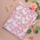Caderno Espiral Gato branco e flor Padrão rosa