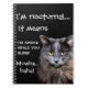 Gatos humorísticos com atitude. Slogan "Sou noturno, significa que estou acordado enquanto você dorme" no caderno espiral.