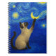 Caderno Espiral Gato Siames Noite Estrelada Lua