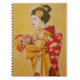 Caderno Espiral Geisha gold kimono original de aquarela