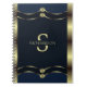 Caderno Espiral Geométrico Dourado E Azul Marinho Monograma