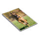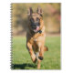 Um cachorro German shepherd revestido de vermelho corre alegremente ao ar livre.